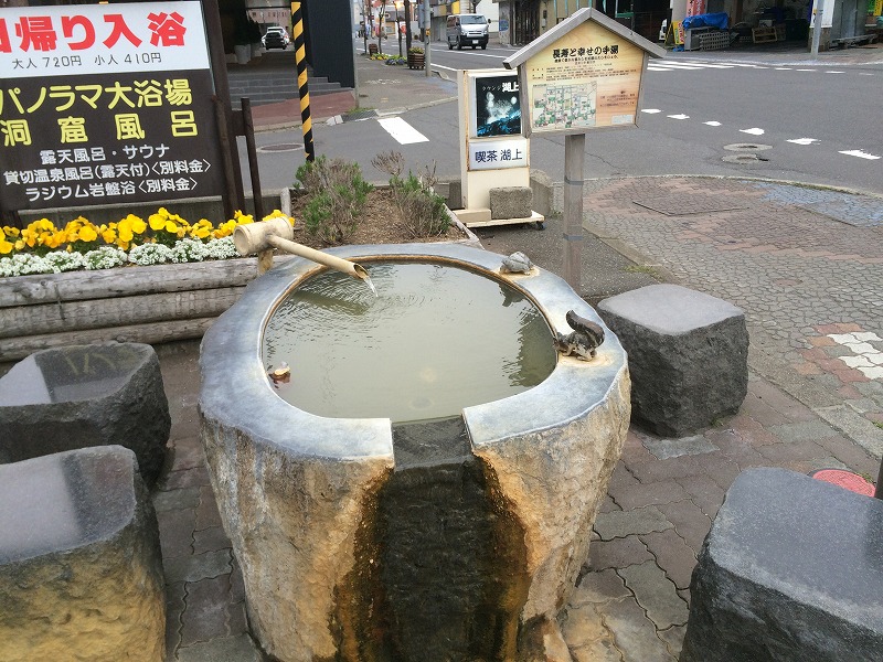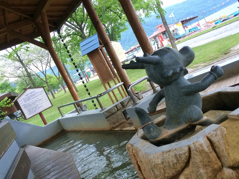 スタートしたのは洞爺観光ホテル前の「長寿と幸せの手湯」からです。