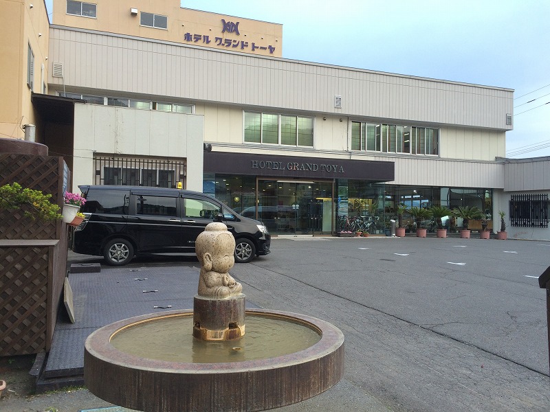 温泉街の東側に戻ってきました。ホテルグランドトーヤ前です。