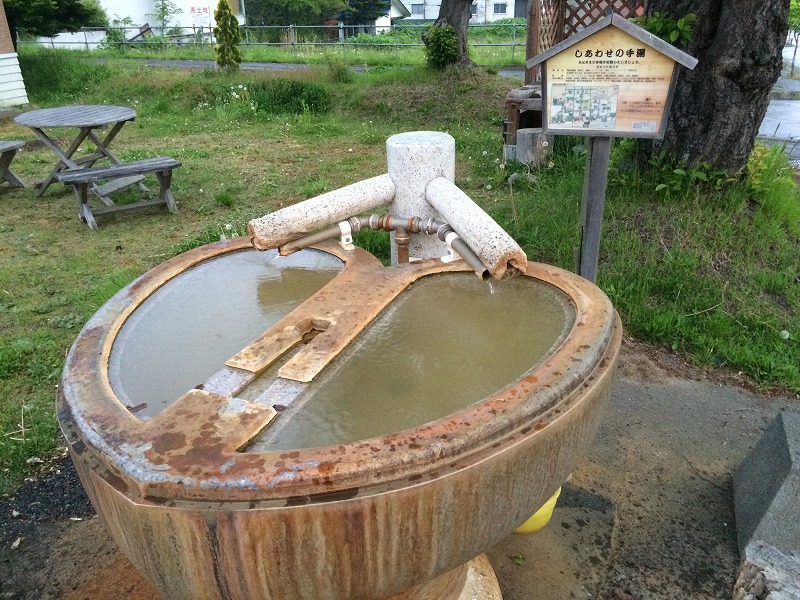 その後またメインストリートに戻り、ガソリンスタンドにある縁結びの手湯へ。