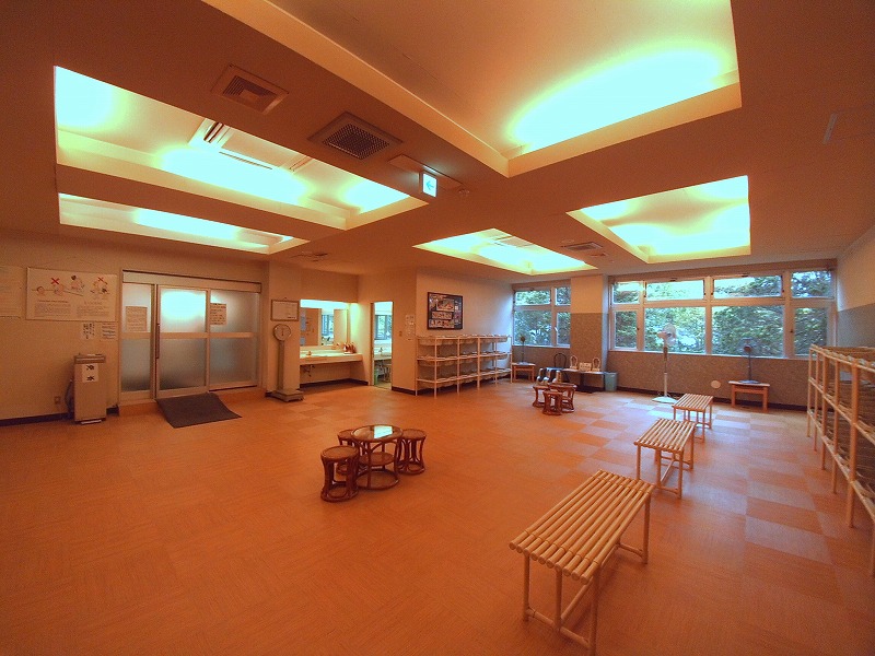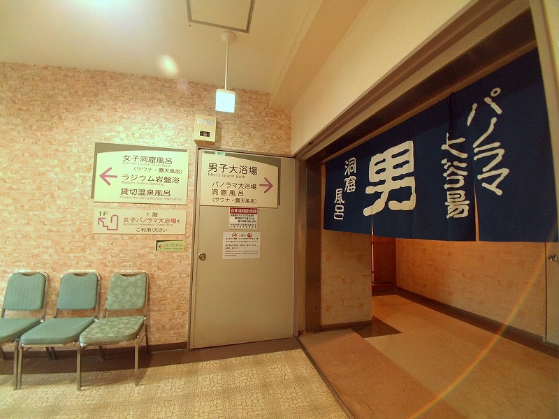 脱衣場の前に来ると、男湯の暖簾に「パノラマ大浴場」と「洞窟風呂」と書かれています。初めて来たのでこの時点では良く分からなかったのですが、2つの浴室が繋がる造りでした。