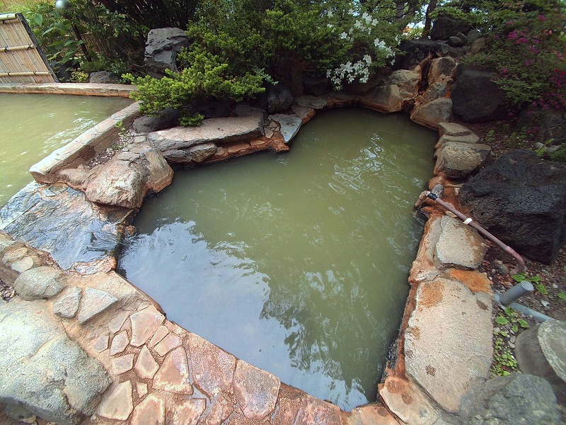 湯使いについてはそれぞれの浴槽のところに記載した通りですが、特に洞窟風呂の露天風呂では比較的透明度の高い緑がかったお湯なのに気がつきました。