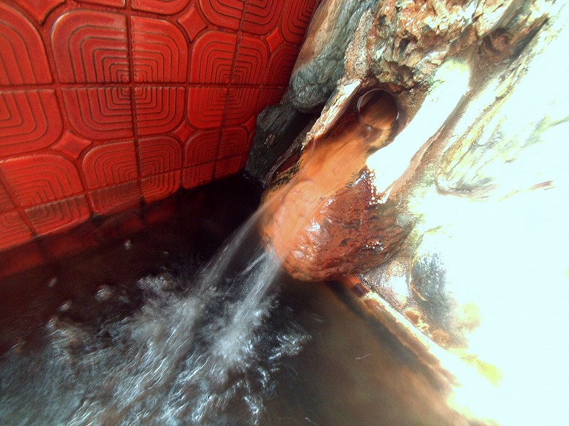 お湯は無色透明ながら、こちらの湯口はオレンジ色に色づいています。