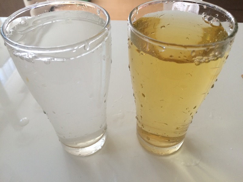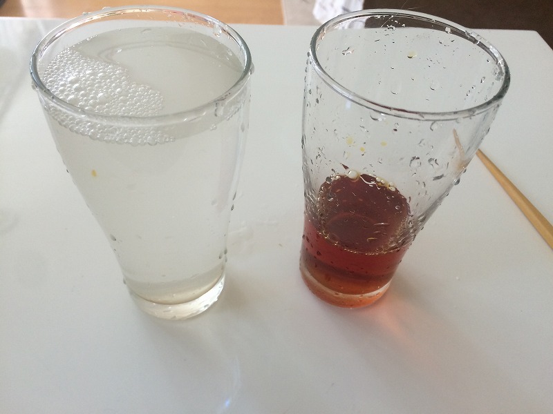 もう片方のコップには水道水を入れました。