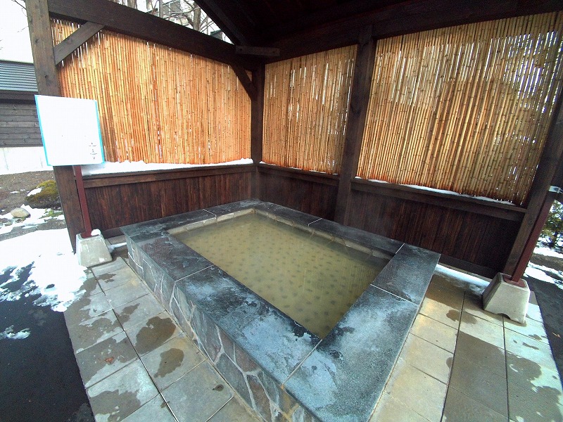 10月の末で雪がある寒々とした景色だったので、湯気が上がっている湯船がさらに魅力的に見えます。早速靴下を脱いで足湯に浸かりました。