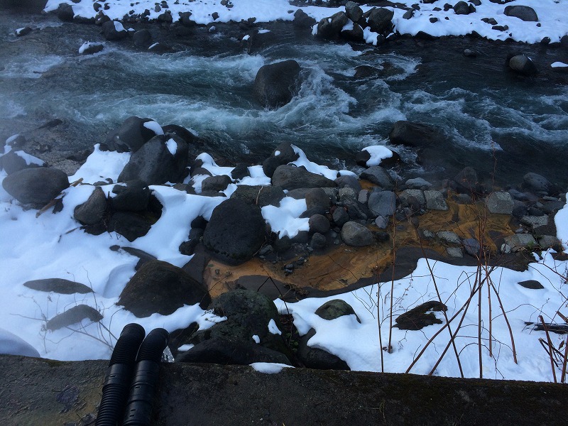 足湯に使われたお湯は、そのまま川へかけ流されているようです。