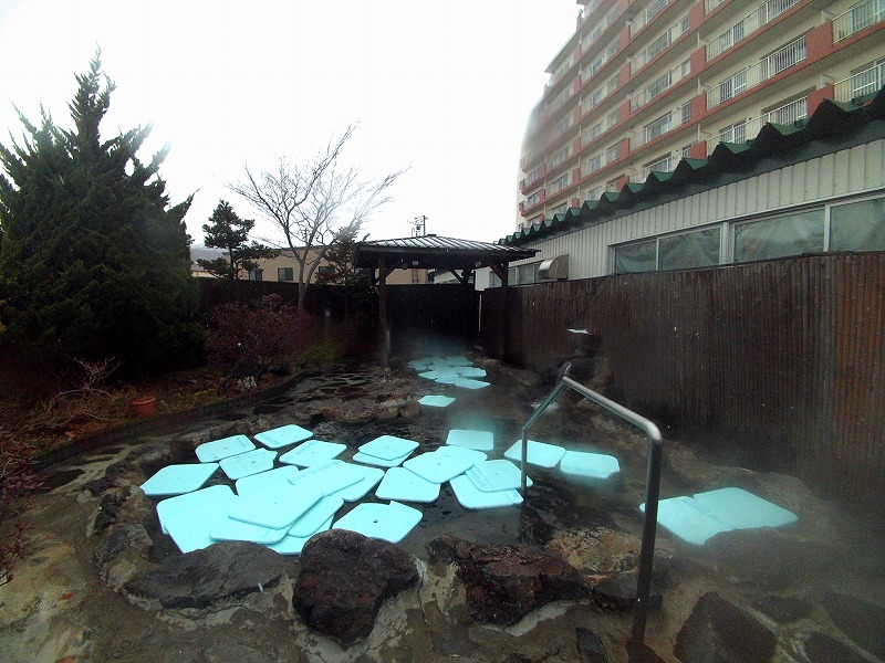 プールの方は午前中から利用者が結構おり、一部が貸切になっていて健康づくりの運動を楽しそうにしています。そうこうしているうちに時間になりましたので、改めてシャワーを浴びて露天風呂へ移動しました。