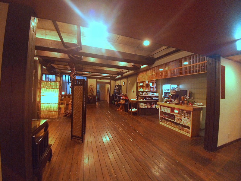 現在の木が敷き詰められた床の間から昔のタイルの床が見えていて、どのようにリニューアルしたのかが分かり、懐かしくもありました。