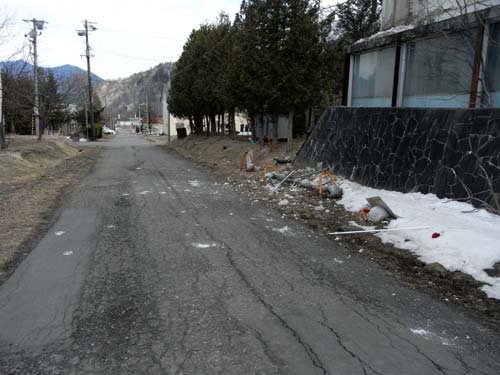 壁が壊れて建物の横の道路に落下するのが日常化していたため、数年前にはこの部分を通行止にするなどの対策がとられています。また廃墟マニアや不審者が侵入する事案も発生し、建物の中で焚火の跡が見つかったこともありました。