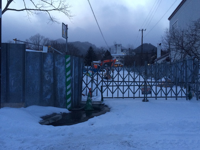 建物はなくなりましたが、年末年始にぬかびら源泉郷に滞在した複数の温泉仲間から気になる連絡をいただきました。情報通りに早速工事現場の裏側に廻ってみると、ゲートの横の雪が融けており、湯気が出ています。