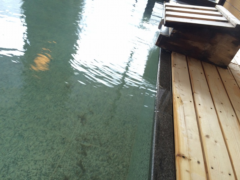 湯口から出るお湯は源泉そのままということです。ぬるめの側で湯口近くにずっと入っていましたが、底には茶色い湯花がたくさん沈んでおり、温泉らしい雰囲気を感じました。