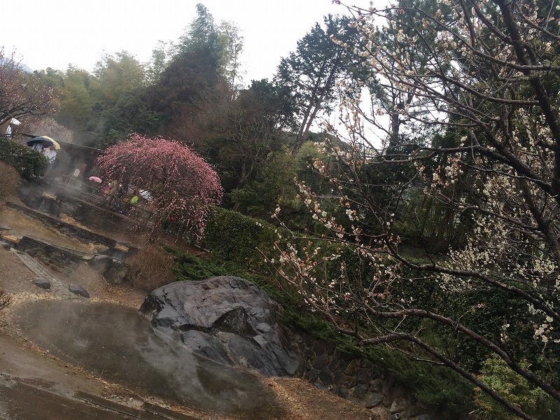 梅園内には昔温泉宿があった場所に温泉の足湯もあります。