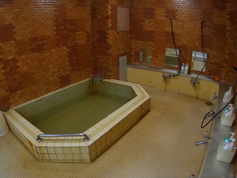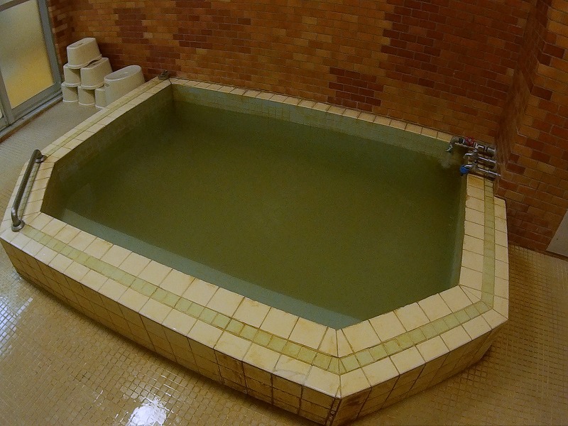 写真では分かりにくいのですが、お湯には貝の澄まし汁のような白い濁りがあり、浸かっていると最初はヌルヌル感、そしてツルツル感へと変わってゆく感じです。少し口に含むと、塩味のある濃いめの重曹の味がしました。