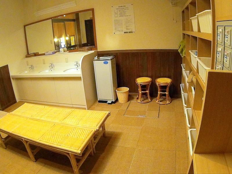 脱衣場の手前、左側に小さな休憩所があるのを見つつ脱衣場へ。