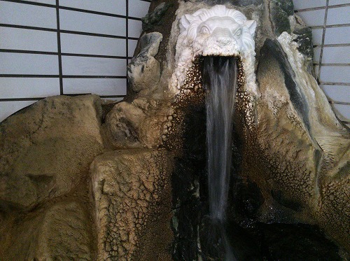 ライオンの口から湯船の水面まで析出物がついており、独特の雰囲気を感じました。