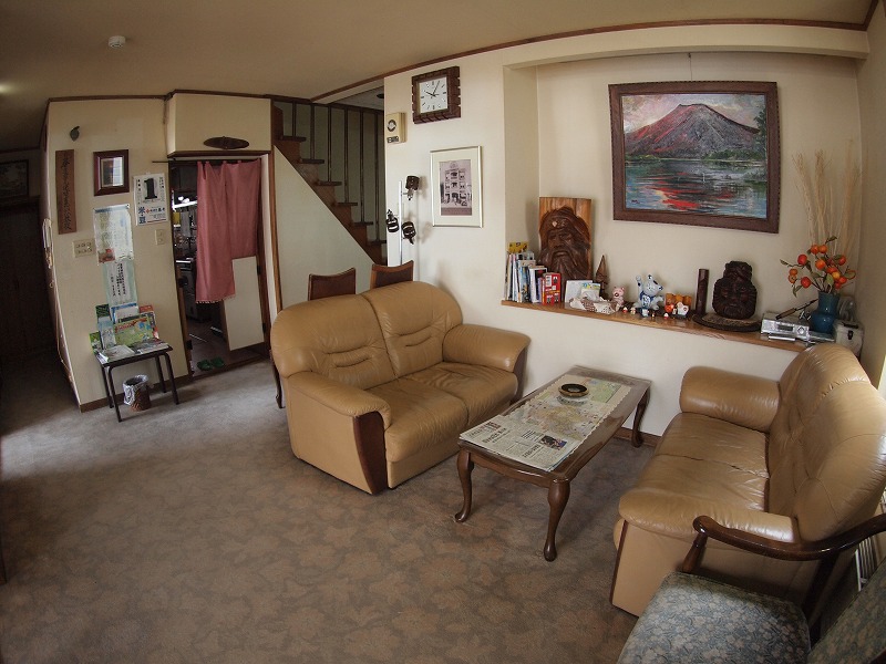 お風呂を頂いた後は、ロビーでしばらく宿主の方とお話を。