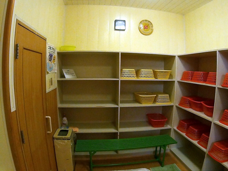 脱衣かごや緑のベンチが昭和の香りたっぷりです。