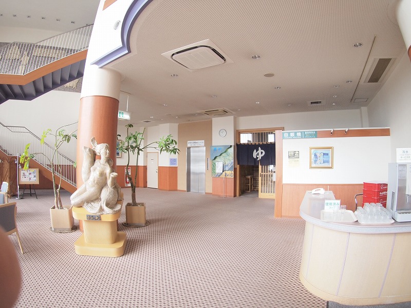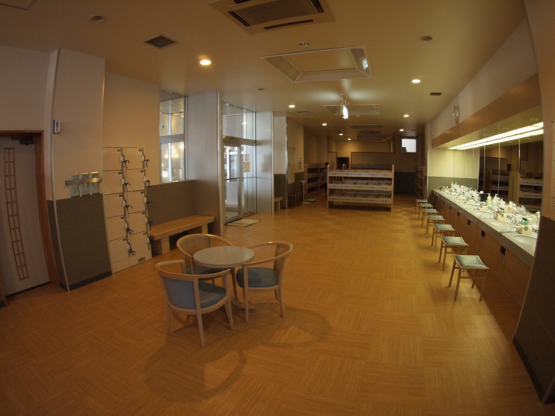 ホテルのロビーから奥へ進むと、脱衣場の前にも広いスペースがありました。