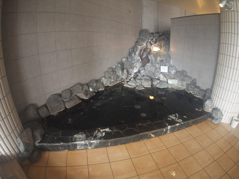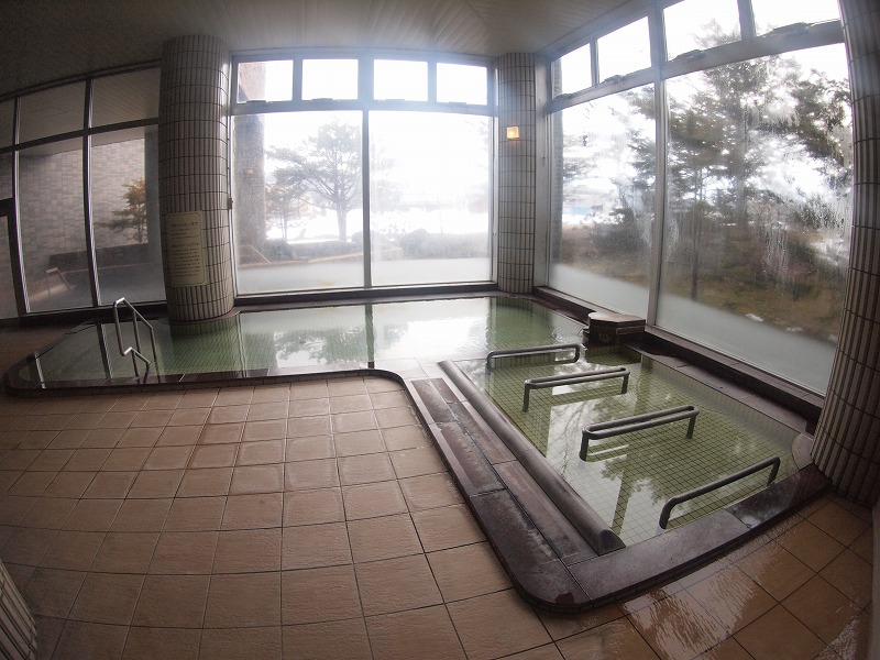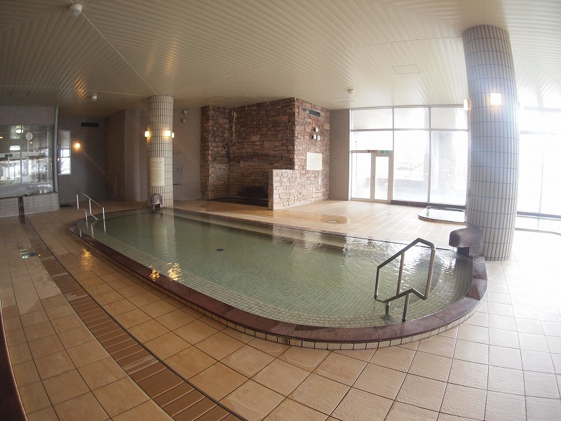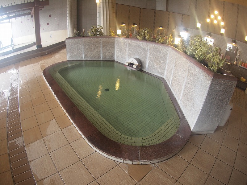 この浴室の中央にある湯船は20人ほど入れそうな大きなもので、42.6℃。