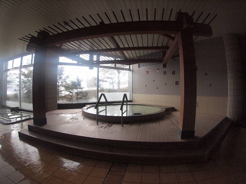 上の2つの湯船の間を進むと、その正面奥に少し雰囲気が異なるスペースがあり、こちらは円形のジャグジーになっていました。