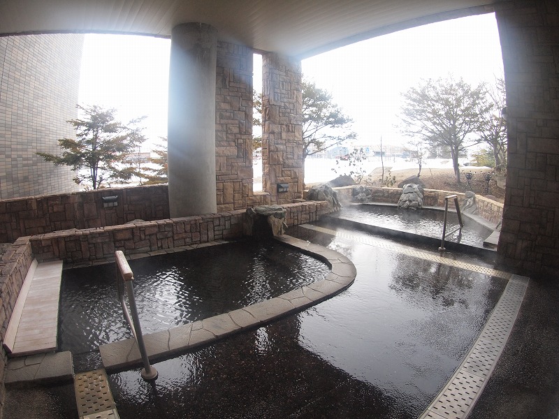 広い内湯から露天エリアに出ると、湯船が2つありました。