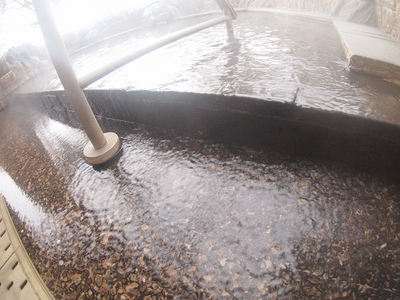 前述の通り、ジャグジーと岩風呂を除く湯船はかけ流しで、淡い玉子臭が心地よいアルカリ性の硫黄泉です。ツルツルとした気持ちの良い肌触りのお湯で、掛け流される量が多く視覚的にも楽しめる露天風呂で長く浸かりました。
