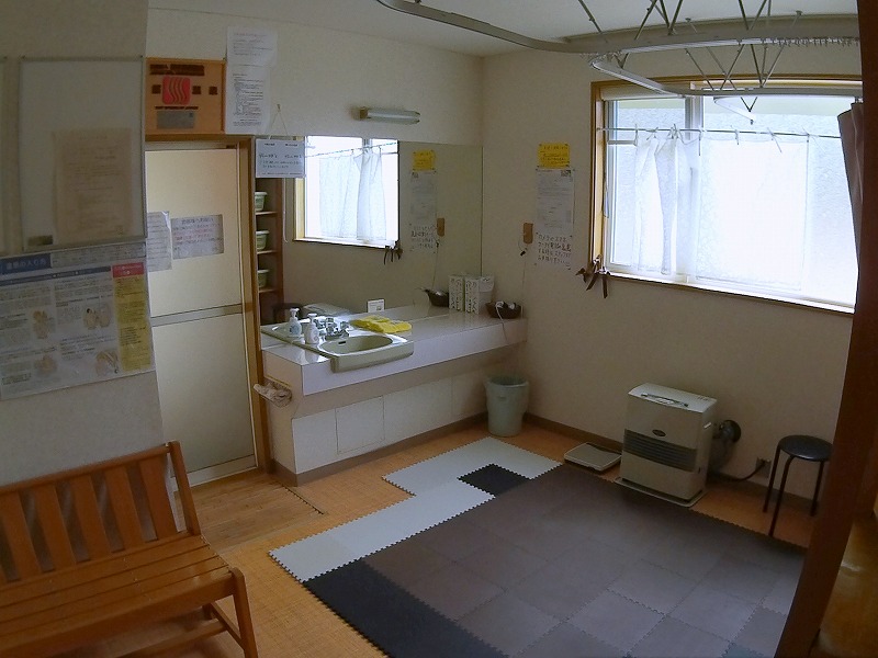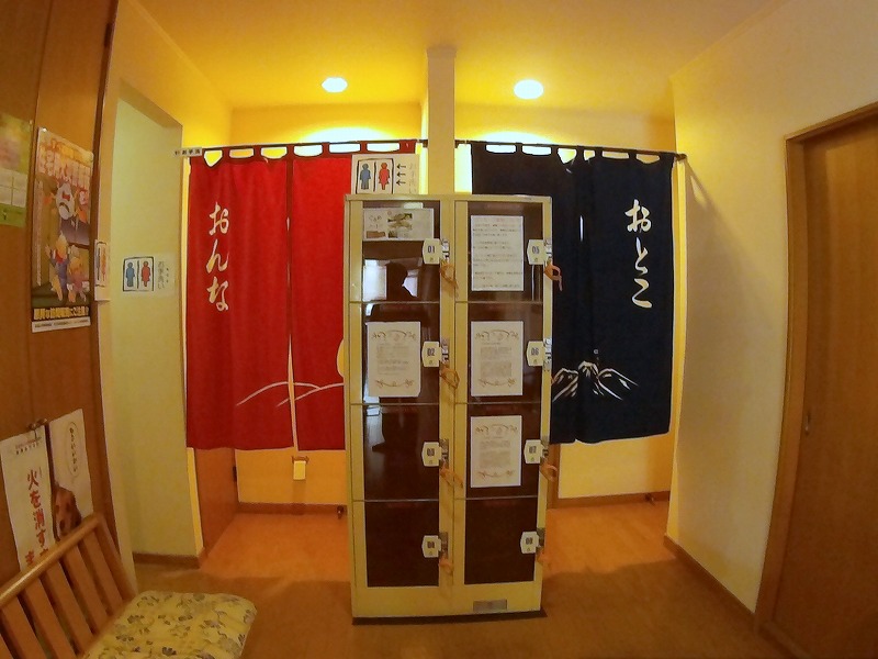 脱衣場は木の棚にプラスチックの脱衣カゴ。比較的コンパクトながら宿の規模にあった大きさで、必要なものは揃っている印象です。