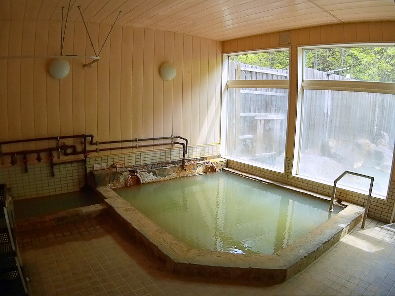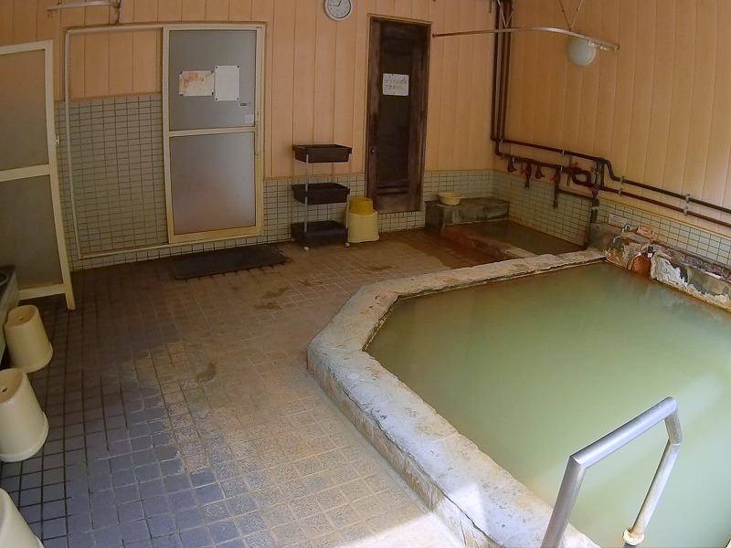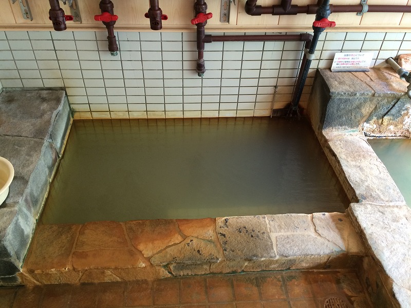 浴室に入ると懐かしい光景が広がりました。苗色に見えるお湯がとても綺麗です。