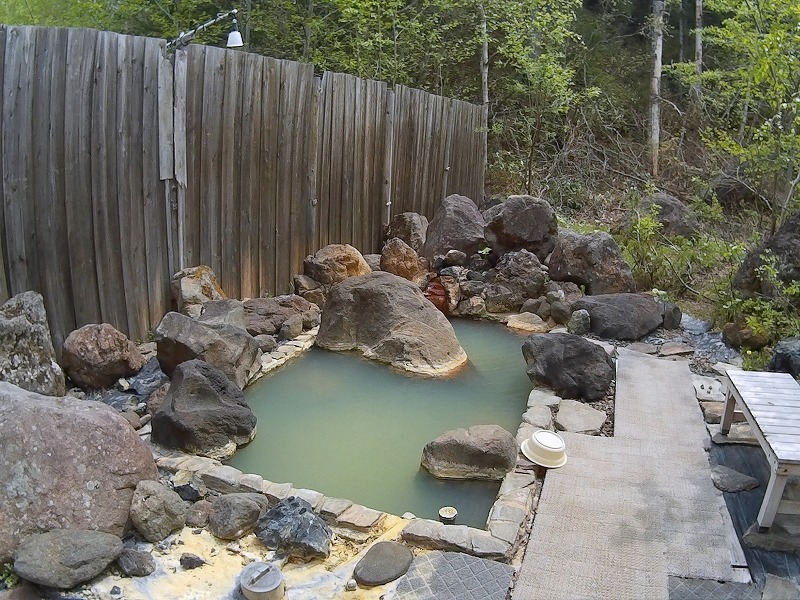 露天風呂の風景も以前と変わらず、中央に大きな石が配されて2つのエリアに仕切られたような状態になっています。