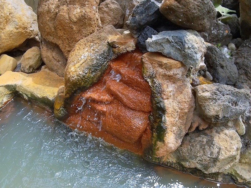 鮮やかな色のお湯に加えて、ここでは湯口の様子も目で楽しむことができます。