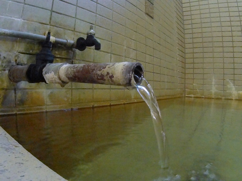 湯量と温度のバランスはしっかりと調整されているそうで、おかげで良いお湯を楽しむことができました。硫黄系のお湯らしい蛇口の錆びも湯殿のアクセントになっています。