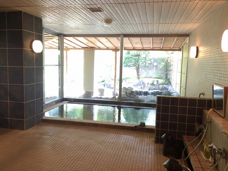 これまで入ってきた同じグループ内の温泉とは雰囲気が違い、タイル張りの昭和なイメージで意外に思いました。こちらの浴室には、洗い場・サウナ・内湯の浴槽があります。