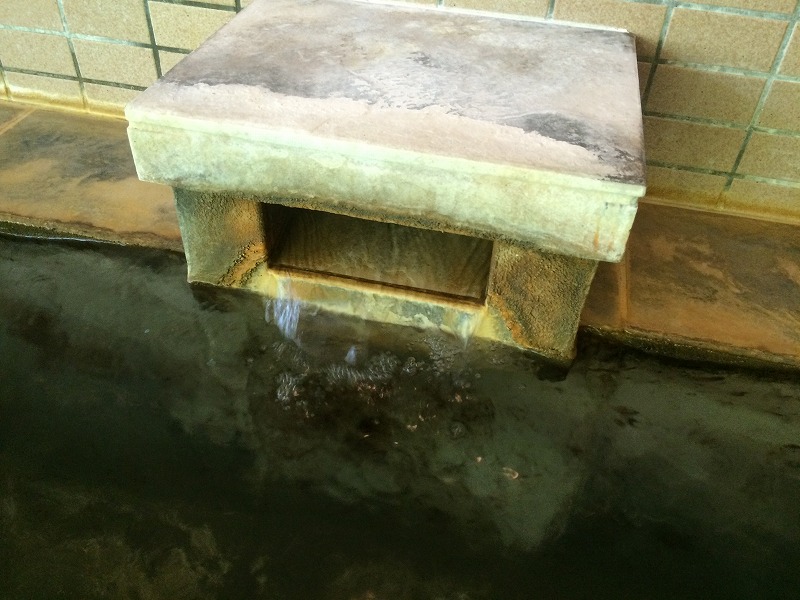 殺菌ありですが内湯に入った時に少し薬品臭を感じる程度で、浸かっている間はほとんど気になりません。内湯の湯口の周りには茶色い湯の花のようなものがたくさん沈んでいて、弱いキシキシ感としっとりした感じがあり、落ち着いて浸かれるお湯という印象でした。