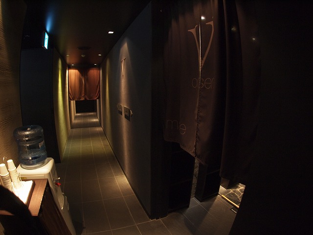 脱衣場の入口はフロントのすぐ横。廊下には飲料水が設置されていました。