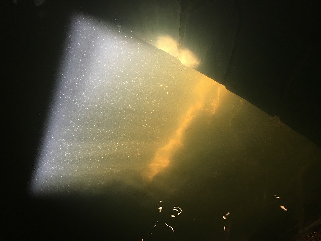 入浴時は温度が高い露天風呂の方がお湯が元気で、内湯の方がぐっと落ち着いた印象を受けました。浴感も露天の方がキシキシ感が強く、内湯はしっとり柔らかい中に弱いキシキシ感という印象です。ところどころ日が射す場所では、金糸雀色のお湯の中で無数に舞う湯の花がはっきりと見え、とても綺麗でした。