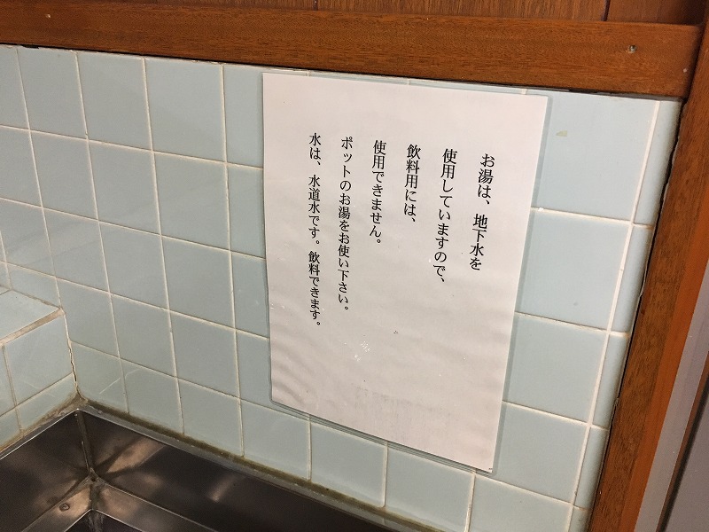 湯量にも余裕があるのか、浴室の洗い場のお湯も加温した鉱泉のようですし、張り紙を見ると共用の洗面台から出るお湯も同様です。
