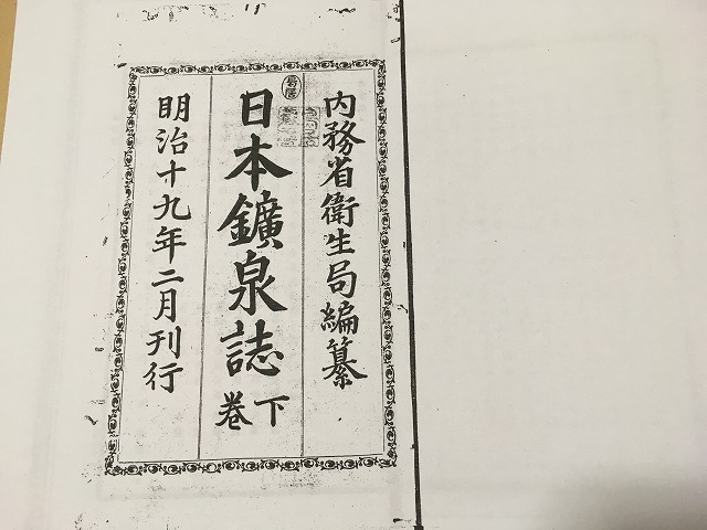 「日本鑛泉誌 下巻」(内務省衛生局・明治19年)。
