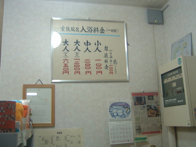 入浴料は大人1人650円、大人2人で1200円(1時間)です。