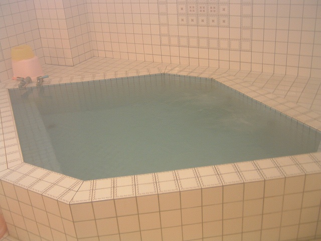 本当に広くて、カランは浴室の両側に2箇所ずつ、計4箇所もあります。家族風呂としては数が多いですね。