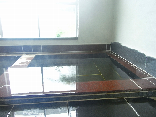 本来は赤い御影石が女湯、黒い御影石が男湯のよう。