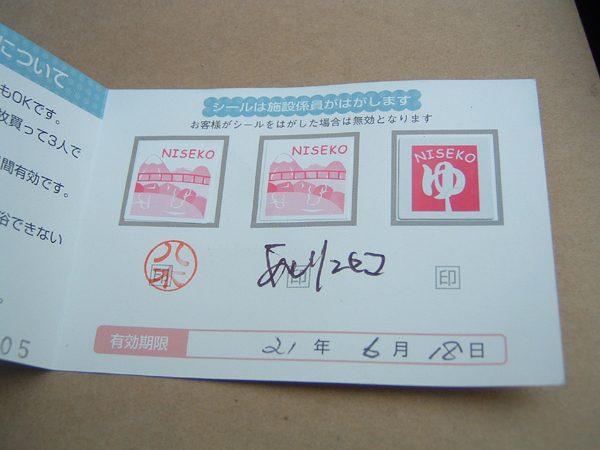 入浴時にパスを使うと、施設の方が1枚シールを剥がし、サインしてくれます。